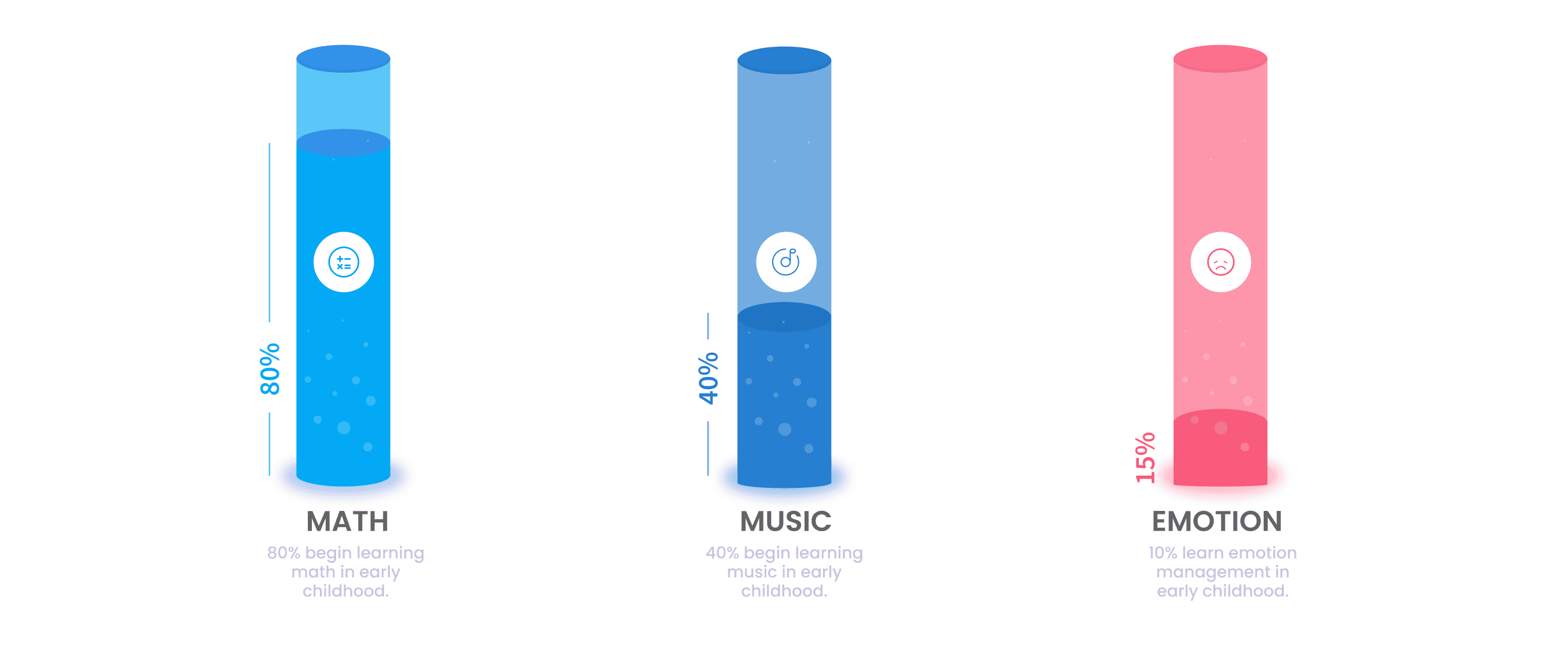 According to the research, most people receive math or music education in early childhood, yet there is a notable lack of emotional learning in early childhood.