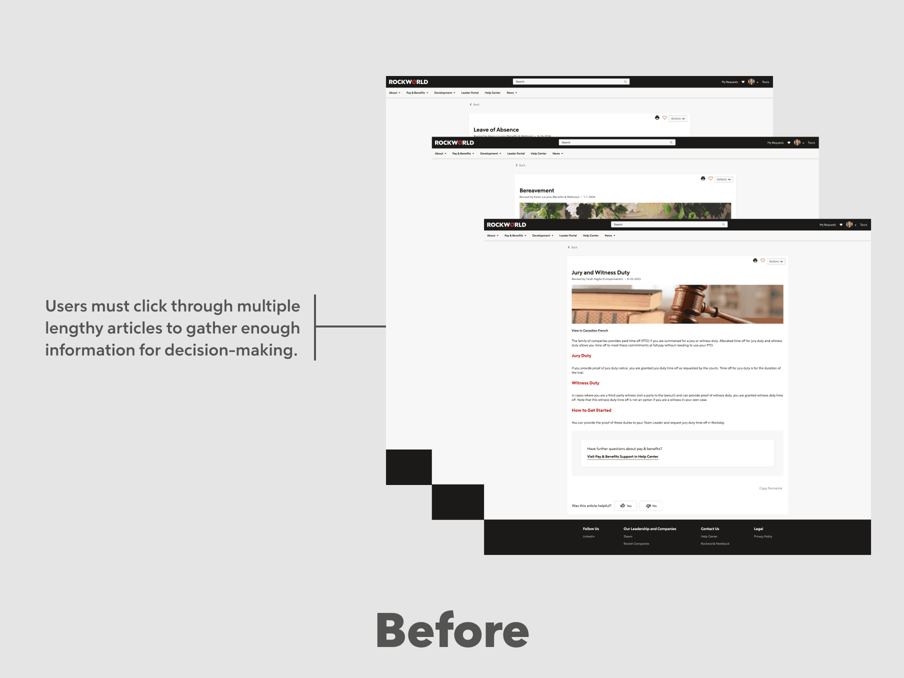 Research revealed that remote new hires struggle to navigate Rockworld due to fragmented tools and overwhelming content, leading to inefficiency—especially for foundational tasks like managing PTO.
