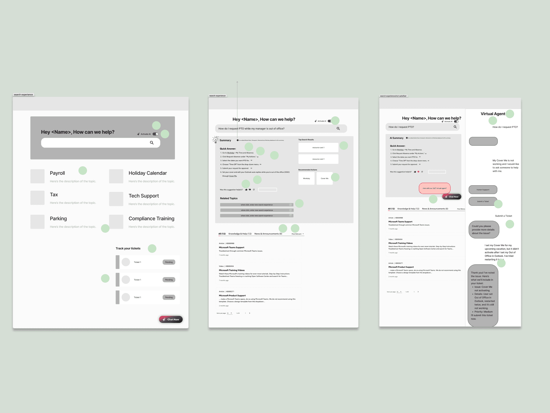 Alex is a fully remote new hire who needs to request Paid Time Off (PTO). Before the redesign, this process was confusing and time-consuming. With the new AI-powered search & virtual agent, Alex can now complete their request in minutes.