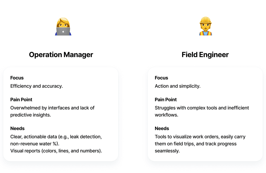 Traditional water pipeline management is inefficient and reactive, so I designed a 0-to-1 AI-powered platform leveraging Machine Learning & LLMs to enable real-time monitoring, predictive insights, and seamless execution—bridging the gap between water managers and engineers.
