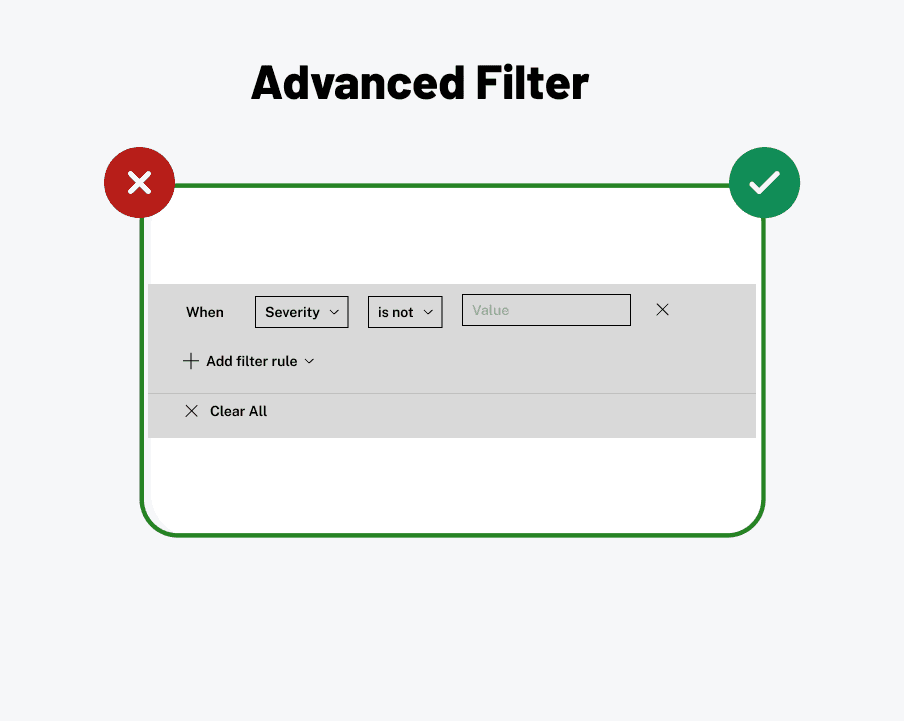 The simple filter provides quick access to predefined options, making it visually clear and intuitive for users. The advanced filter complements this by offering flexibility for more complex and technical filtering needs.