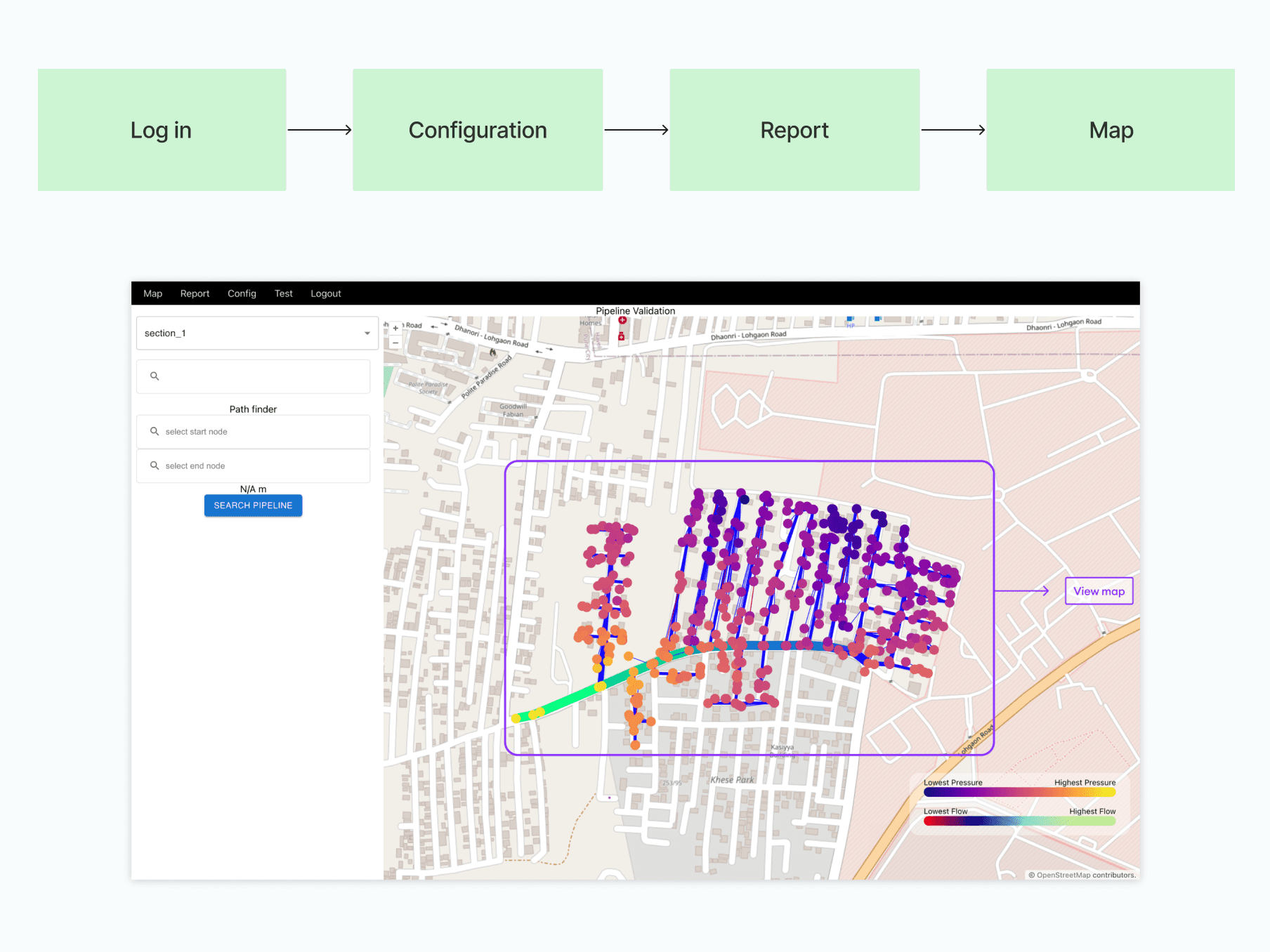 Visualized Monitoring: Instantly see pressure and flow speed variations on a dynamic map.
