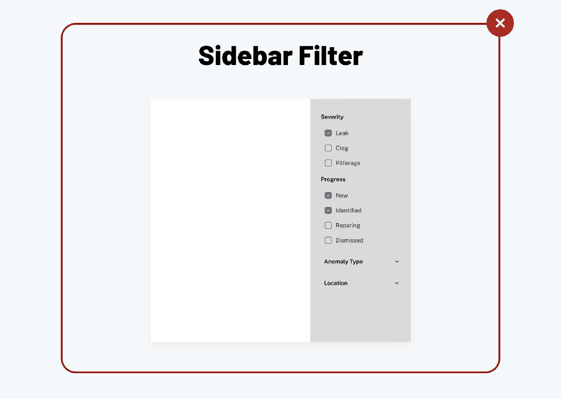 The Sidebar Filter supports nesting a large number of values, making it ideal for future growth. It also provides a clear overview of all filtering options at a glance, aiding navigation and usability.